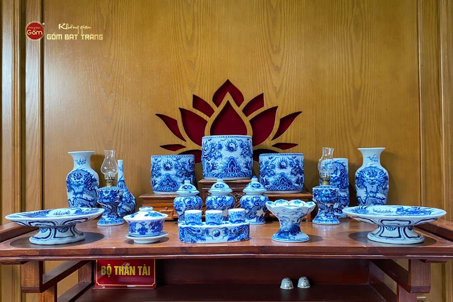 Một bộ đồ thờ Bát Tràng đầy đủ sẽ bao gồm các vật phẩm đáp ứng nhu cầu sử dụng thờ cúng, cầu nguyện. Mỗi vật phẩm trong bộ thờ đóng một vai trò khác nhau. Trong bộ thờ cũng có nhiều phụ kiện hỗ trợ các nghi thức trong thờ cúng. Một bộ thờ gốm sứ Bát Tràng bao gồm các vật phẩm sau: